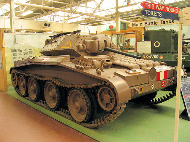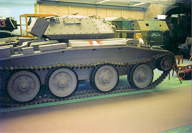 SpecificationCrew: 4 Armament: Main: 2 pdr OQF (3 inch howitzer on CS models; Secondary: 1 x Besa MG Battle weight: 40,320 lbs Length: 19ft 0.375ins; Height: 7ft 3.75ins; Width: 8ft 6.75ins Armour: Max 40 mm, Min 7 mm Engine: Meadows Flat 12 D.A.V. 280hp Max speed: 31 mph |