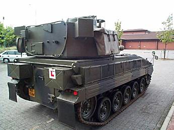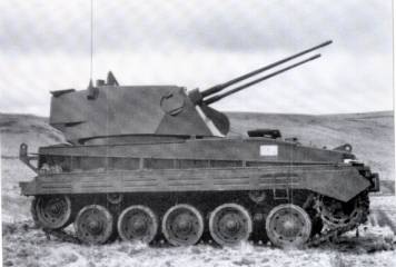 Based on the Abbot hull, this vehicle had a two man powered turret mounting twin 30 mm Hispano Suiza stabilised cannon with a rate of fire of 1,300 rounds per minute and an effective range of approximately 3,000 metres. The vehicle was an experimental working prototype only. Development was ceased, principally due to insufficient ammunition stowage. |