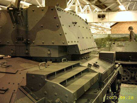 Originally designed as an infantry tank version of the A9, but with bolted on thicker armour, this vehicle was re-classified as a heavy cruiser. The A10 Mark I had the same turret as the A9. Only 13 were built. The Mark IA had a modified mount for the main armament. The vehicle was used by the BEF in Normandy and saw action at Tobruk in 1941. It suffered from poor cross-country performance and was rather slow. All the pictures on this page are of the CS (Close Support) version with 3.7 inch howitzer which is on display at The Tank Museum, Bovington. The standard vehicle was armed with a 2 pounder.