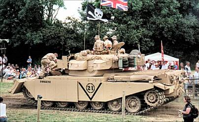 The first four photographs in the body of this page are of a standard configuration AVRE 165. The other pictures show a restored vehicle photographed at the War and Peace Show 2002. This vehicle is in the configuration used in the Gulf War. It lacks a fascine cradle and has additional armour.
