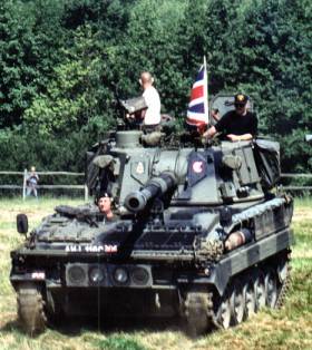 FV433 Abbot 105 mm SP GunNow withdrawn from service, this 105 mm self propelled artillery piece was for many years one of the most important Royal Artillery vehicles. The suspension is common with the rest of the FV430 series, but the rest of the vehicle is radically different to the FV432 based vehicles, having a large fully traversable turret mounting a 105 mm L13A1 gun on a purpose built hull. |