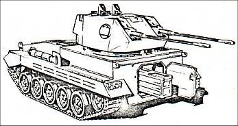 Based on the Abbot hull, this vehicle had a two man powered turret mounting twin 30 mm Hispano Suiza stabilised cannon with a rate of fire of 1,300 rounds per minute and an effective range of approximately 3,000 metres. The vehicle was an experimental working prototype only. Development was ceased, principally due to insufficient ammunition stowage. |