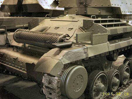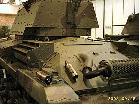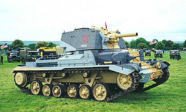 Originally designed as an infantry tank version of the A9, but with bolted on thicker armour, this vehicle was re-classified as a heavy cruiser. The A10 Mark I had the same turret as the A9. Only 13 were built. The Mark IA had a modified mount for the main armament. The vehicle was used by the BEF in Normandy and saw action at Tobruk in 1941. It suffered from poor cross-country performance and was rather slow. All the pictures on this page are of the CS (Close Support) version with 3.7 inch howitzer which is on display at The Tank Museum, Bovington. The standard vehicle was armed with a 2 pounder.