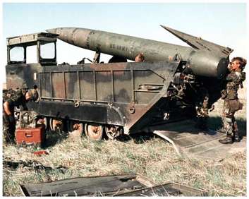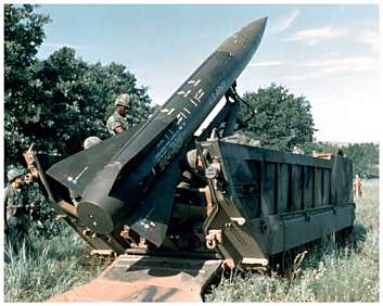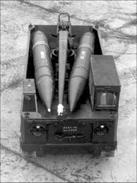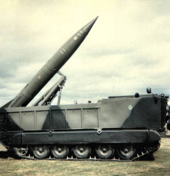 The M752 Lance Self Propelled Missile Launcher (SPL) is based upon the US M113 personnel carrier and has the same suspension and power train. Lance came into British service in 1976, equipping the 50th Missile Regiment, Royal Artillery and replacing Honest John. Lance was finally withdrawn from service in 1992. The support Loader Transporter (LT), M688, is of similar design and carries two missiles with dismounted fins. This one is in US service: The missile itself carries a warhead of approx. 211 Kg. Only nuclear warheads were used in British service. |