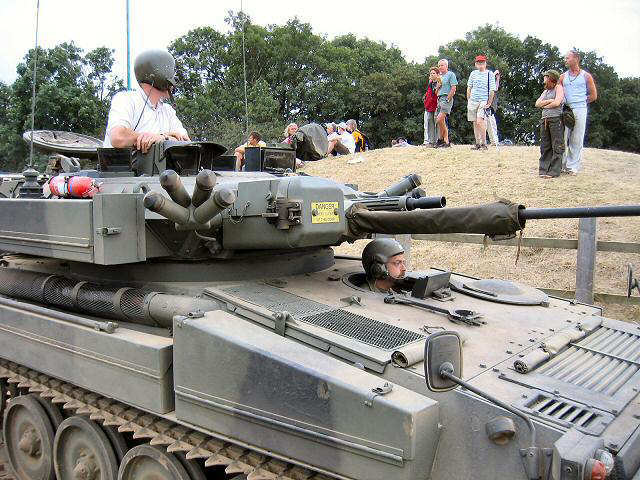 With the withdrawal from service of FV101 CVR(T) Scorpion and also the Fox armoured car, Sabre was created by marrying modified Fox turrets with Scorpion hulls. The resulting vehicle has the curve-sided turret of Fox with the same 30 mm Rarden Canon as Scimitar. It can be distinguished from Scimitar by the turret shape and by the coaxial chain gun.