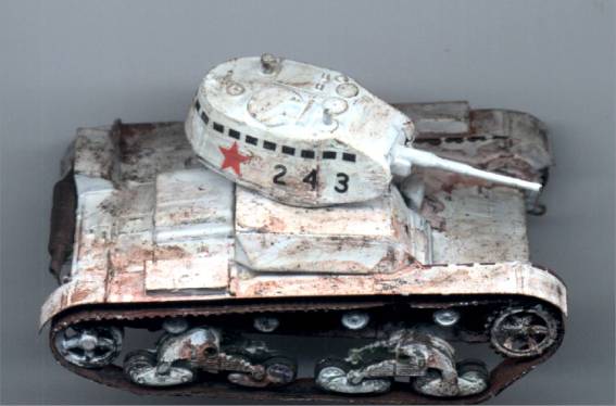 This is a very nice little kit with one or two especially nice touches. It is principally of injection moulded polystyrene with etched brass detail parts. I particularly liked the etched brass mudguards. They certainly give a much better appearance than over-thick injection mouldings. I found the etched brass tow hook loops to be a bit too fine and remade them in wire, which has a chunkier appearance and looks more business-like. The various etched fittings on the rear-plate are just right, however. I was disappointed with the track, which as supplied is in the form of seamless vinyl bands with very little surface detail and instead of proper track guides has a continuous ridge on the inner surface. I fabricated my own tracks using embossed heavy aluminium foil from Chinese takeaway containers. This material is getting in short supply - it’s a pity so many takeaways are going over to plastic microwave boxes, although these also have their uses.