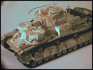 I was browsing through the stock at Dorking Models the other day, and I spotted this 1/72 resin kit of the Russian T-28. Now, I normally stick to 1/76 scale, but I must confess that I have a weakness for the 1930s multi-turretted tanks, so when I saw this one, I just had to buy it,even though the price was high at £21.00. And a very tanky tank it proved to be! The casting was excellent, although, of course I had to remove the usual resin excesses. This was fairly straighforward with a scalpel and a razor saw. The tracks had to be carefully heat formed from flat castings with a hair dryer. I fabricated the machine guns from copper wire, added my own twisted wire hawsers and also fitted a frame antenna around the turret, which I made from tinned copper wire, soldered to the correct pattern.