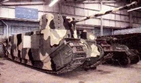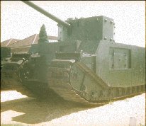 The TOG heavy tanks were designed by a committee of First World War stalwarts, who had been responsible for the first tanks. Hence TOG, for "The Old Gang". The vehicles were very much designed for WWI conditions, rather than for those encountered in WWII, being intended to operate on muddy ground and have good trench crossing ability. TOG 1 was rather similar in many ways to the French Char B, also having a hull mounted howitzer of the same type. The turret was the same as that used in the Matilda. These vehicles had a number of interesting features. For example, the drive arrangements used a Paxman Ricardo V12 diesel engine developing 600hp, powering the tracks via an electrical transmission system. This was prone to overheating during the trials of TOG 1, but despite changing TOG 1 to hydraulic transmission, the electrical transmission was retained for TOG 2. The turret and Metadyne traverse system finally mounted in TOG 2* were similar to that eventually used in the A30 Challenger, and TOG 2* has the distinction of being the first British vehicle to mount the 17pdr gun. It was intended that these vehicles would also be fitted with sponsons for machine guns. The weight of these vehicles was in excess of 80 tons. The maximum speed was 8.5mph, approx. 4mph cross country. |